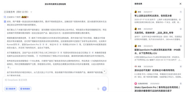 “请帮我推荐一款适合游泳时戴的耳机。”当第一财经记者向DeepSeek提出这个问题时,AI很快给出了回答,提及“已阅读8个网页”。很少有人会进一步点开链接,但如果深入探究,用户会发现这些链接大多指向搜狐、网易、新浪这样的门户网站,而具体的创作者可能是0赞0粉丝的新账号。